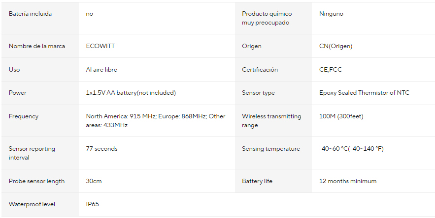 Fácil de usar: Con su diseño simple e intuitivo, el sensor de temperatura del suelo Ecowitz WN34S es fácil de usar.