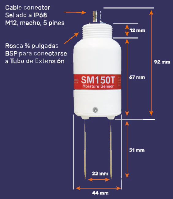 El Delta-T SM150T es un sensor de humdad de suelo de grado investigativo, compacto, confiable y versátil, ideal para aplicaciones que requieren precisión continua en variables críticas del suelo. Su salida dual (humedad y temperatura), junto a una instalación sencilla y durabilidad garantizada (IP68 y 5 años de garantía), lo hacen una excelente elección para la agricultura moderna y el monitoreo ambiental.