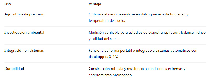 • Fácil integración con dataloggers Delta‑T o externos que manejen la señal 0–1 V